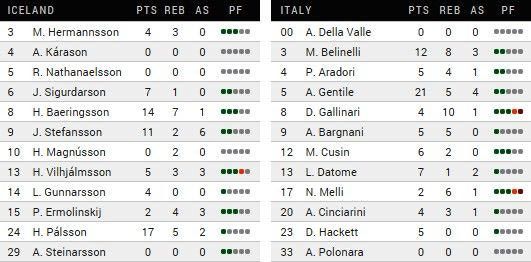 Η Ιταλία νίκησε γιατί… στα 2:20 πριν από τη λήξη ο Πιέτρο Αραντόρι πέτυχε ένα γκολ – φάουλ που άλλαξε το ρου της αναμέτρησης. Οι Ισλανδοί, παίζοντας στα όρια, είχαν στριμώξει τους “ατζούρι” όταν προηγήθηκαν 62-59. Ο Στέφανσον όμως έχασε ένα σουτ στο 62-62 και σε συνδυασμό με την προσπάθεια του Ιταλού γκαρντ τα δεδομένα στο παρκέ ανατράπηκαν. Ο Τζεντίλε έβαλε απλώς τη σφραγίδα της πρώτης νίκης της ομάδας του Σιμόνε Πιανιτζιάνι στη διοργάνωση. Νίκη αν μη τι άλλο ανακουφιστική…