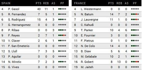 Η Ισπανία νίκησε γιατί… ο Πάου Γκασόλ δεν ήθελε με τίποτα να χάσει αυτό το παιχνίδι. Ο ψηλός της “φούρια ρούχα” ήταν συγκλονιστικός στη μάχη με τους Γάλλους και τους κέρδισε μόνος του, τελειώνοντας το παιχνίδι με 40 πόντους από 12/19 δίποντα και 16/18 βολές, ενώ είχε ακόμη 11 ριμπάουντ, 3 μπλοκς, 1 ασίστ και 1 κλέψιμο.