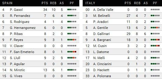 Η Ιταλία νίκησε γιατί… ο Μάρκο Μπελινέλι φόρεσε το μανδύα του εκτελεστή στο δεύτερο μισό του αγώνα και διέλυσε κάθε αμυντικό σύστημα της Ισπανίας. Ο Ιταλός σουτέρ είχε δύο πόντους από την πρώτη περίοδο και τελείωσε το ματς με 27 από 7/9 τρίποντα. Τους 17 εκ των οποίων πέτυχε στο τρίτο δεκάλεπτο ανατρέποντας με την απαραίτητη συμβολή του Ντανίλο Γκαλινάρι το αντίπαλο προβάδισμα.