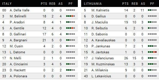 1/2 βολές για την Ιταλία, 6/8 για τη Λιθουανία.
