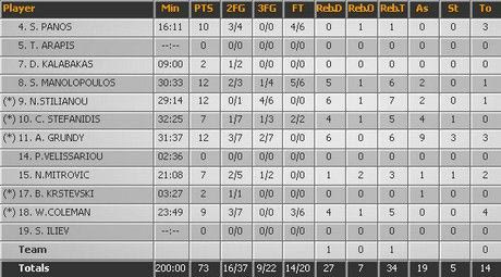 Ο Πάλμερ προσπάθησε να κρατήσει τη δραμινή ομάδα μπροστά (67-63), πάλι όμως τα τρίποντα άλλαξαν την ιστορία του αγώνα. 2/2 από Στεφανίδη, Γκράντι και δύο βολές (σε τέσσερις προσπάθειες) από τον Κόλεμαν έκαναν το 69-71, την ώρα που Νόουλς και Πάλμερ ήταν άστοχοι στο κρίσιμο σημείο. Το τρίποντο του Κακαρούδη για το 73-72 ήρθε αργά για την ομάδα του Καλαφατάκη.