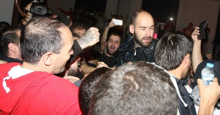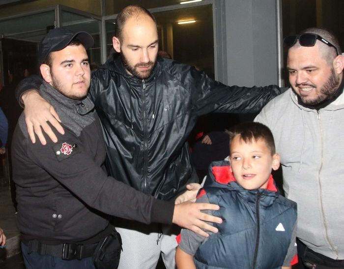 Ανάμεσα στους φιλάθλους ήταν κι οι ιδιοκτήτες του Ολυμπιακού, Γιώργος και Παναγιώτης Αγγελόπουλος που είχαν θερμούς εναγκαλισμούς με τους Γιώργο Πρίντεζη, Γιάννη Σφαιρόπουλο και “Kill Bill”!