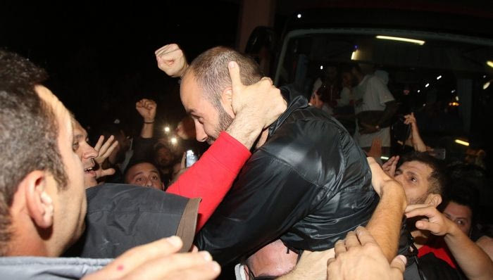 Οι εκστασιασμένοι φίλαθλοι της Ολυμπιακού επιφύλαξαν μία απίστευτη υποδοχή στους παίκτες της ομάδας στο ΣΕΦ, ύστερα από τη νίκη μέσα στο ΟΑΚΑ επί του Παναθηναϊκού. Τη “μερίδα του λέοντος” κέρδισε ο Βασίλης Σπανούλης που σημείωσε το τρίποντο που χάρισε τη νίκη στους Πειραιώτες, με οπαδούς να τον αποθεώνουν και να τον σηκώνουν στα χέρια!