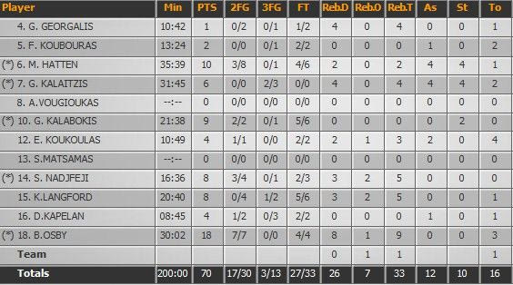 Ο… αψεγάδιαστος Μπαμπάλε Όσμπι. Έβαλε 18 πόντους με 7/7 δίποντα και 4/4 βολές, ενώ μάζεψε 8 ριμπάουντ. Αναδείχθηκε πρώτος σκόρερ και δεύτερος ριμπάουντερ της αναμέτρησης.