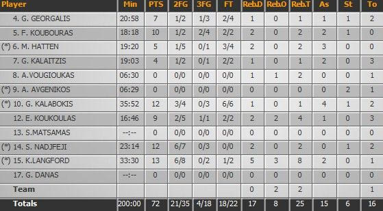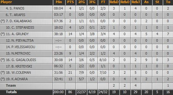 Με 7 στα 9 δίποντα και 7 στις 10 βολές, ο Γουίλιαμ Κόουλμαν ήταν ανίκητος στη ρακέτα, τόσο του Κολοσσού, όσο και της ομάδας του, αφού εκτός των 5 ριμπάουντ, μοίρασε και 4 τάπες.
