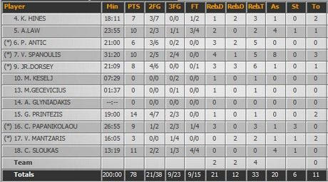 Μερικά αποφασιστικά σουτ από τους Σπανούλη, Μάντζαρη και Σλούκα, οι ωραίοι συνδυασμοί του Λο με τον Ντόρσεϊ και η καταλυτική απόδοση του Πρίντεζη όχι μόνο δημιούργησαν το +19 (38-57) αλλά δημιούργησαν και μαξιλάρι ασφαλείας για την αναμενόμενη αντίδραση του Κολοσσού. Οταν αυτή ήρθε (μέσω του Χάτεν) ο Ολυμπιακός διατήρησε την ψυχραιμία του και έφτασε στη μεγάλη νίκη.