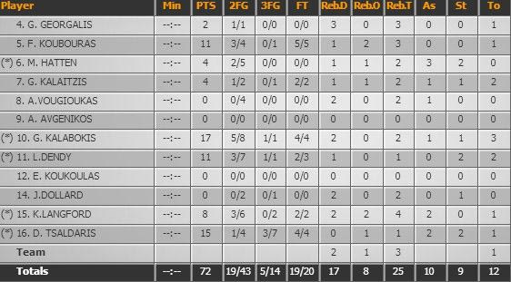 Το ημίχρονο βρήκε τους ερυθρόλευκους να προηγούνται με 45-37, γεγονός που έδωσε την ευχέρεια στους παίκτες του Μπαρτζώκα να απαλλαχθούν από κάθε είδους έννοια και να κάνουν όπως ήθελαν τη δουλειά τους. Με την πάροδο του χρόνου ο Κολοσσός έδειχνε ανήμπορος να ακολουθήσει για να φτάσουμε αρχικά στο 67-52 του τρίτου δεκαλέπτου και εν συνεχεία στο τελικό 88-72.