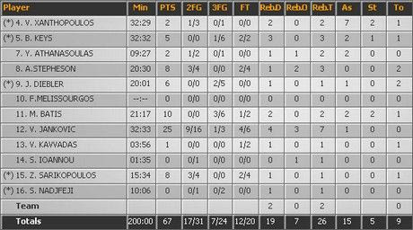 Με τα χρήματα που είχε ο Φραγκιάς επέλεξε ποιοτικούς ξένους. Καλύτερος εξ αυτών στο πρώτο ματς ο Ρούμπεν Μπόικιν που τέλειωσε το ματς με 20 πόντους χάνοντας μόνο τρία σουτ. Καθόλου άσχημα…