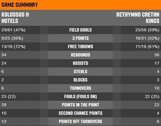 Ο Κολοσσός έδειξε πως ήθελε περισσότερο τη νίκη απέναντι σε ένα “νωχελικό” Ρέθυμνο, το οποίο άργησε να μπει στη διεκδίκηση του αγώνα. Τα λίγα λάθη (6) σε συνδυασμό με τον πλουραλισμό στην επίθεση, έφεραν τη νίκη στους Ροδίτες.