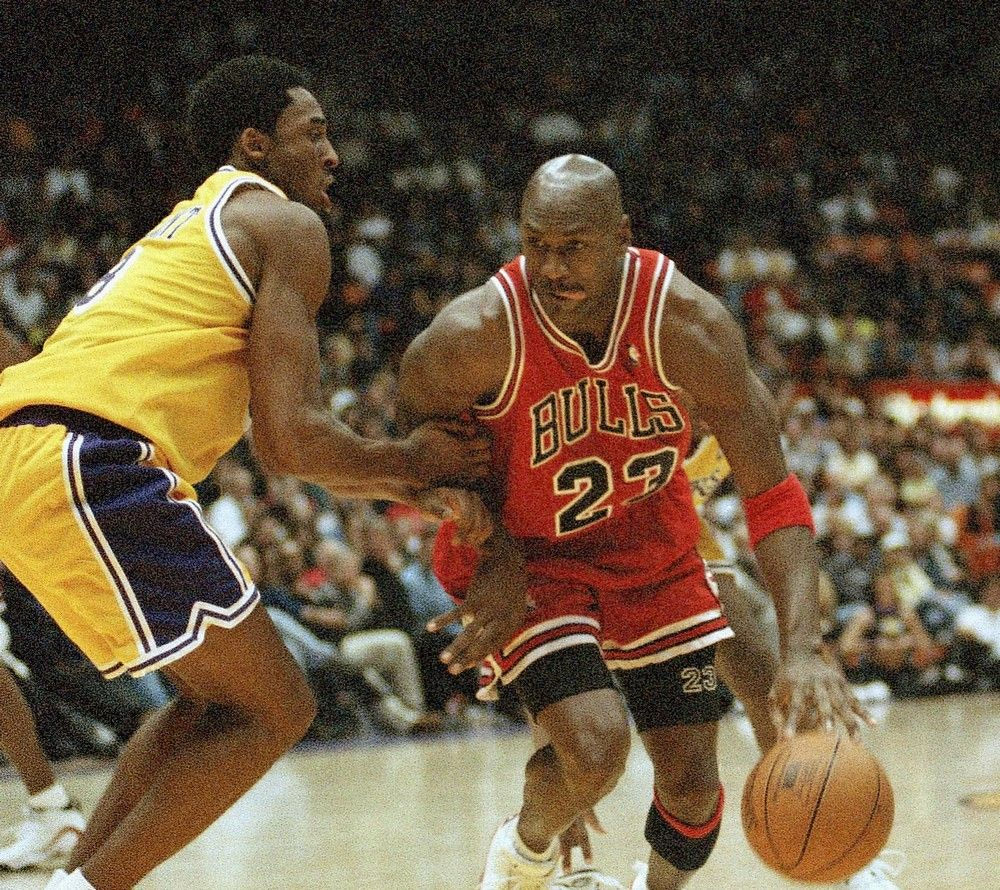 Ο Κόμπε Μπράιαντ με αντίπαλο τον Μάικλ Τζόρνταν σε μία από τις λιγοστές, οκτώ στο σύνολο, φορές που πρόλαβαν να βρεθούν αντιμέτωποι AP Photo/Kevork Djansezian
