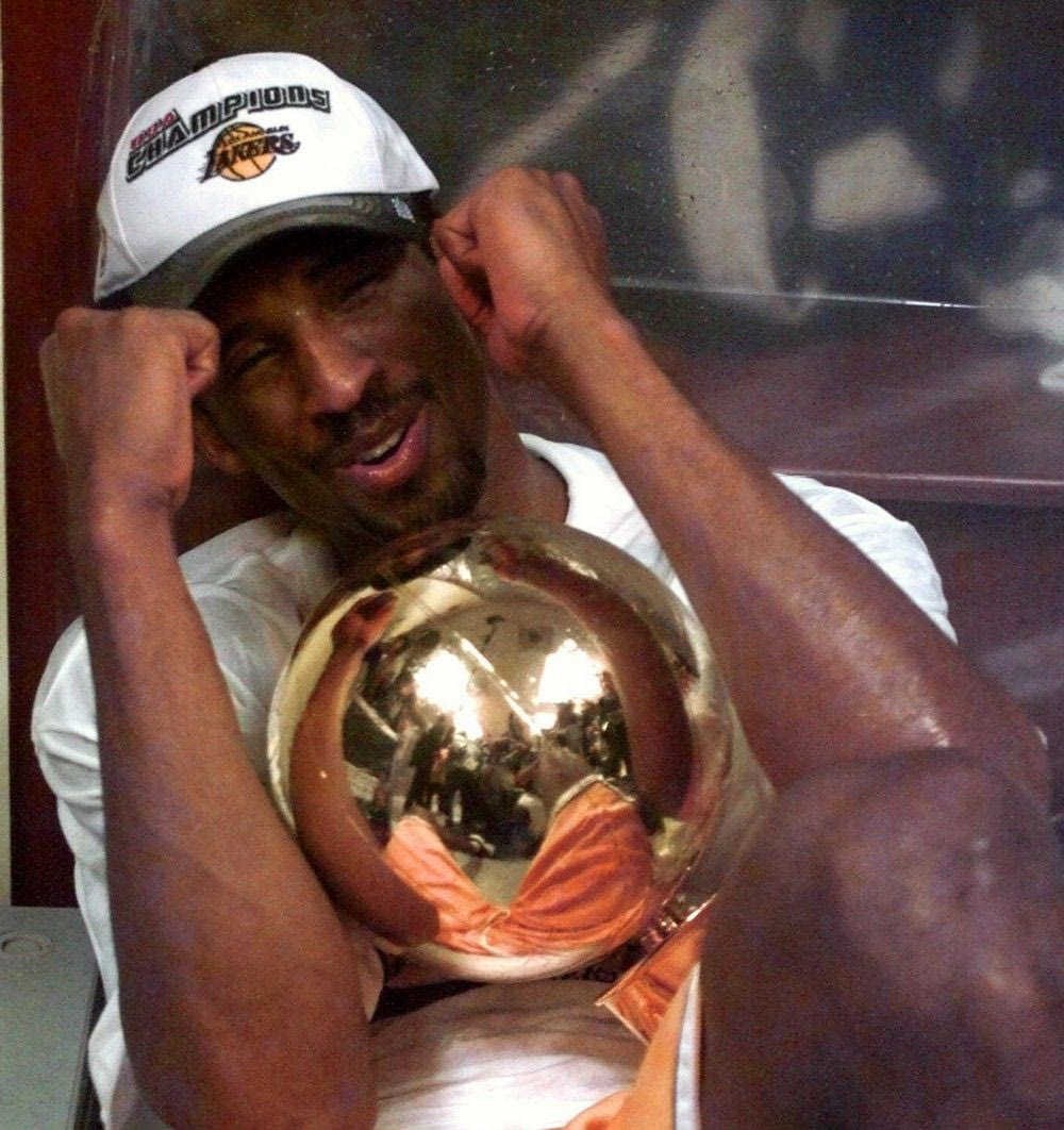 Το 2000 οι Λέικερς κατακτούν το πρωτάθλημα και ο Κόμπε Μπράιαντ δεν αποχωρίζεται το τρόπαιο στ' αποδυτήρια AP Photo/Reed Saxon