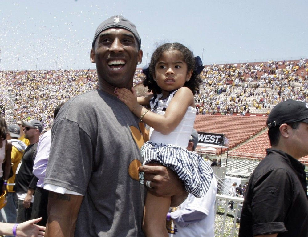 Ο Κόμπε Μπράιαντ με την κόρη του Τζιάνα στα επινίκεια των Λέικερς για τον τίτλο του 2009. Η μικρή επέβαινε μαζί του στο ελικόπτερο AP Photo/Jae C. Hong, file