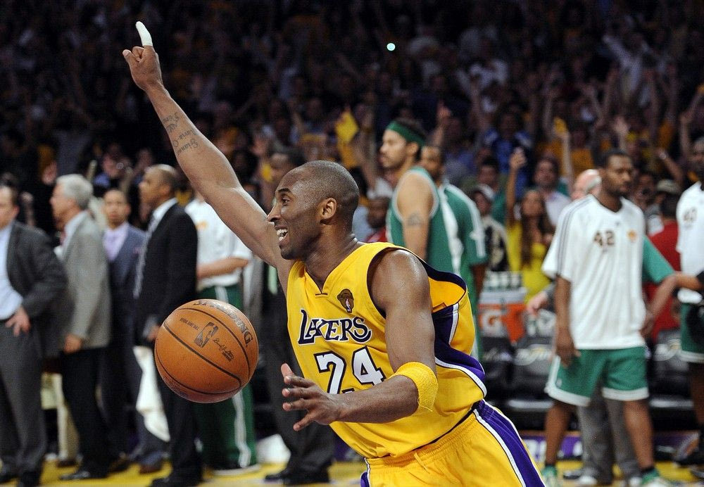 Οι Λέικερς έχουν μόλις επικρατήσει των Σέλτικς στον έβδομο τελικό του 2010 και ο Κόμπε Μπράιαντ πανηγυρίζει σαν μικρό παιδί AP Photo/Mark J. Terrill)