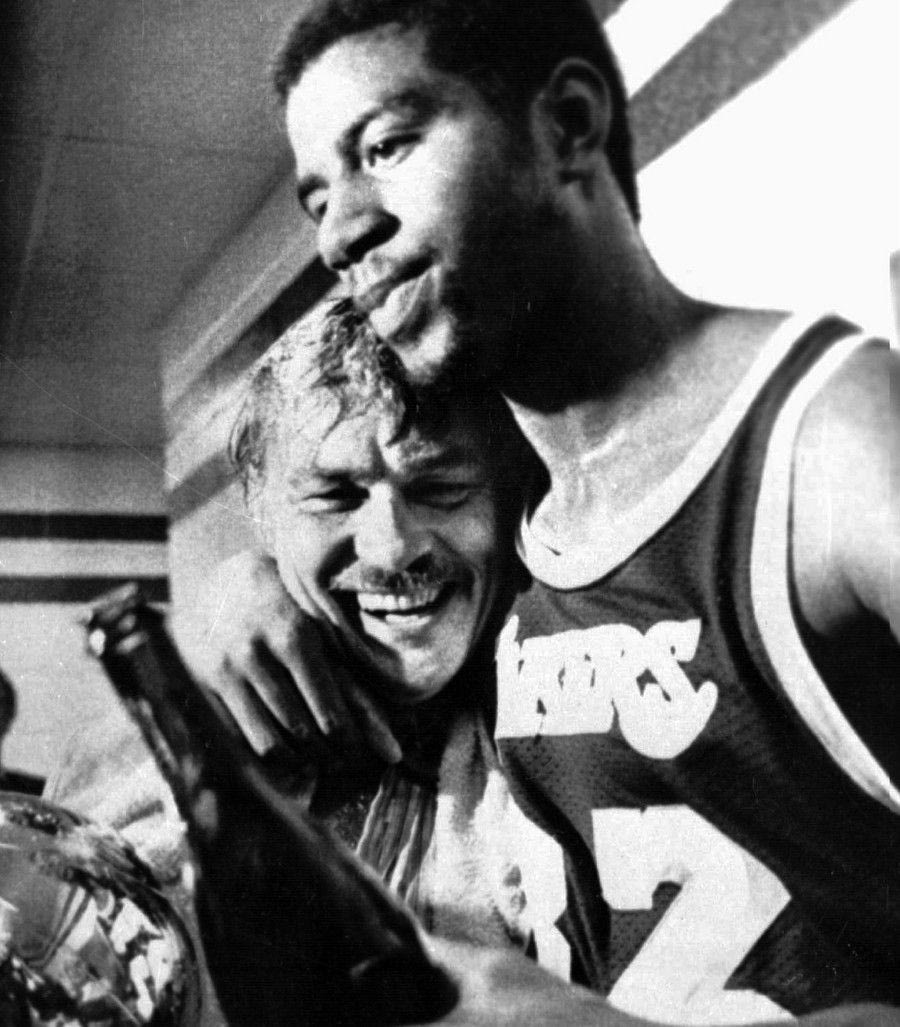 Ο Dr. Μπας αγκαλιά με τον Μάτζικ, μετά την κατάκτηση του πρωταθλήματος του 1980. (AP photo/Gene Pushkar) ASSOCIATED PRESS