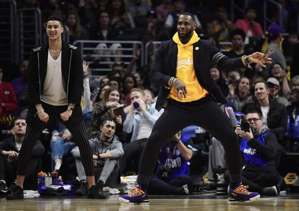 O ΛεΜπρον Τζέιμς με τον Κάιλ Κούζμα, στη νίκη επί των Κλίπερς στις αρχές Απριλίου (AP Photo/Mark J. Terrill) AP