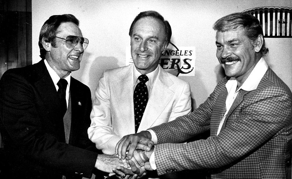 O Jerry Buss, την ημέρα που πήρε τους Λέικερς (ΝΒΑ), τους Κινγκς (NHL) και το Forum από τον Τζακ Κεντ Κούκ, για 67.5 εκατομμύρια δολάρια. (AP Photo/Nick Ut) AP