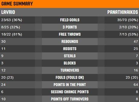 Τελικό σκορ, Λαύριο Παναθηναϊκός 72-79.