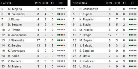 Ο Στρέλνιεκς έκανε μεγάλο ματς, ο Μπέρζινς ήταν τείχος στη ρακέτα και η Σλοβενία δεν κατάφερε σε κανένα σημείο να νιώσει άνετα στο παρκέ. Με ξεσπάσματα δεν ήταν εύκολο να πετύχει την ανατροπή και μετά το 55-52 του 30′ η Λετονία ξέφυγε ακόμη και 67-57 (36’41”), στριμώχνοντας στα σχοινιά μια ομάδα χωρίς χαρακτήρα.