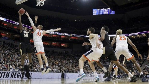 Η ομάδα του πανεπιστημίου Βιρτζίνια πανηγυρίζει την επιστροφή της σε Final Four εθνικού πρωταθλήματος μπάσκετ των ΗΠΑ, δηλαδή του κολεγιακού πρωταθλήματος, από το 1984, αφού νίκησε 80-75 το Περντιού στην παράταση, στο παιχνίδι που έγινε τα ξημερώματα της Κυριακής στο Λούιβιλ, για να γίνει η δεύτερη ομάδα που εξασφαλίζει ότι θα βρίσκεται σε ένα από τα 3 τελευταία παιχνίδια της φετινής σεζόν.