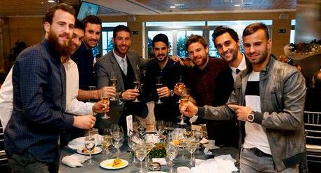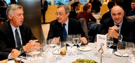 Ο Κάρλο Αντσελότι και ο Πάμπλο Λάσο κάθισαν εκ δεξιών και εξ αριστερών του προέδρου Φλορεντίνο Πέρεθ, ενώ οι αθλητές αναμείχθηκαν στα τραπέζια. Μια οικογένεια δηλαδή.