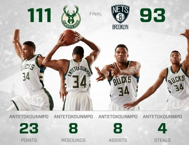 Οι επικοί χαρακτηρισμοί για τον Γιάννη Αντετοκούνμπο φαίνονται πολλές φορές υπερβολικοί, όμως με τα καθημερινά κατορθώματά του στο ΝΒΑ, ο νεαρός Έλληνας άσος αποδεικνύει ότι αξίζει κάθε διθυραμβικό σχόλιο. Τα ξημερώματα της Παρασκευής πραγματοποίησε νέα εξαιρετική εμφάνιση και οδήγησε τους Μπακς στην επικράτηση επί των Νετς με 111-93. Ο “Greek Freak” ήταν ο κορυφαίος στο παρκέ ολοκληρώνοντας το ματς ως πρώτος σκόρερ της αναμέτρησης, ενώ παράλληλα ήταν ο πρώτος ριμπάουντερ, ο πρώτος πασέρ και ο πρώτος “κλέφτης” του αγώνα.