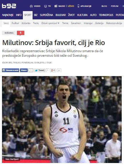 Το νέο μεταγραφικό απόκτημα του Ολυμπιακού, Νίκολα Μιλουτίνοφ, βρίσκεται αυτή την περίοδο στην προετοιμασία της Εθνική Σερβίας ενόψει του Ευρωμπάσκετ 2015. Παρόλα αυτά, με δηλώσεις του στο σερβικό σάιτ ” b92.net“, σχολίασε τη μεταγραφή του στους “ερυθρόλευκους”, δήλωσε ανυπόμονος να ξεκινήσει προετοιμασία με την ομάδα του Πειραιά, ενώ “έπλεξε” το εγκώμιο του Βασίλη Σπανούλη, τον οποίο αποκάλεσε ως έναν από τους καλύτερους παίκτες της Ευρώπης.