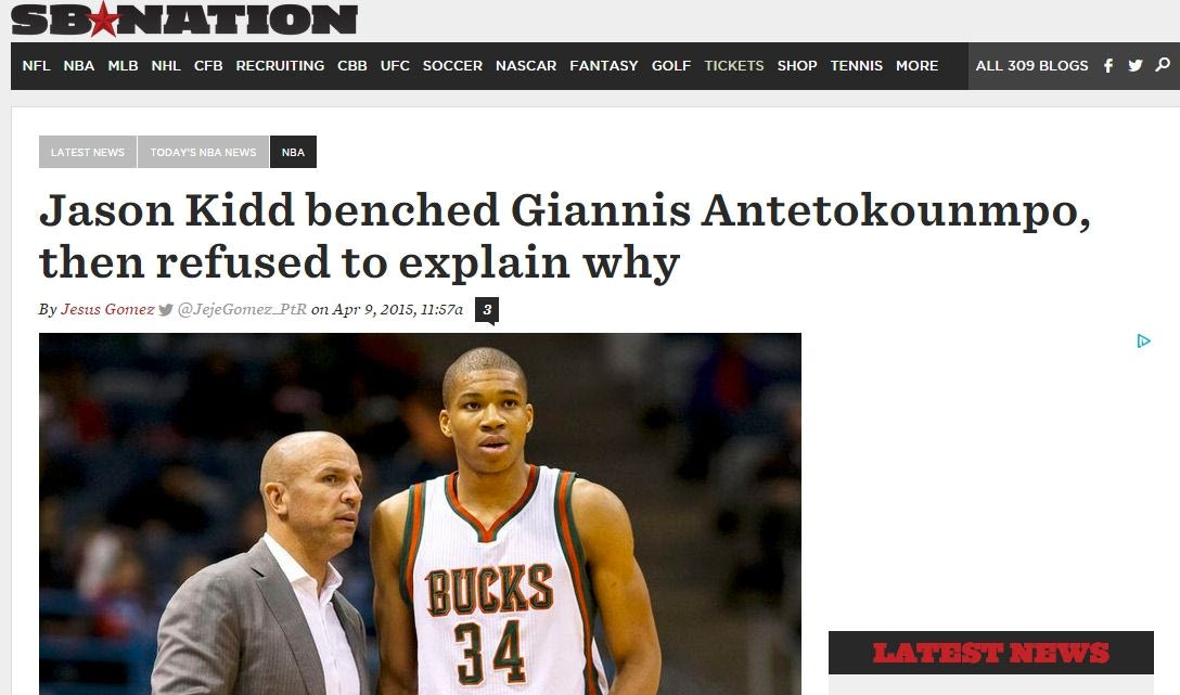 Άνθρωποι που έχουν καθημερινή τριβή με το ρεπορτάζ το Μπακς δυσκολεύονται να πιστέψουν πως η απόφαση του Κιντ πάρθηκε για καθαρά αγωνιστικούς λόγους, καθώς ο “Giannis” ακόμα κι όταν δεν ξεκινούσε βασικός, αγωνιζόταν κατά τη διάρκεια των αγώνων. Είχε άλλωστε το απόλυτο με 77 αγώνες, εκ των οποίων στους 64 είχε ξεκινήσει στη βασική πεντάδα. Επιπλέον, στα προηγούμενα 5 παιχνίδια είχε καλή παρουσία, έχοντας 12 πόντους και 4 ριμπάουντ κατά μέσο όρο. Μοναδικό μελανό σημείο οι πολλές άστοχες βολές (9/12) στην αναμέτρηση με τους Ορλάντο Μάτζικ.
