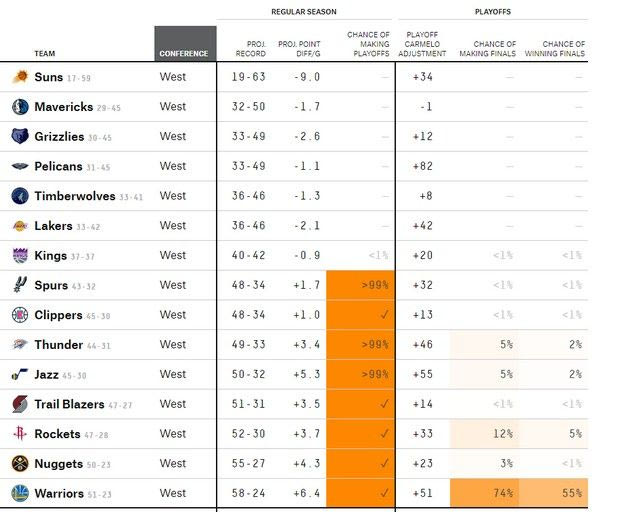 > Ρόκετς 47-28 (πιθανότερος αντίπαλος: Τζαζ) και