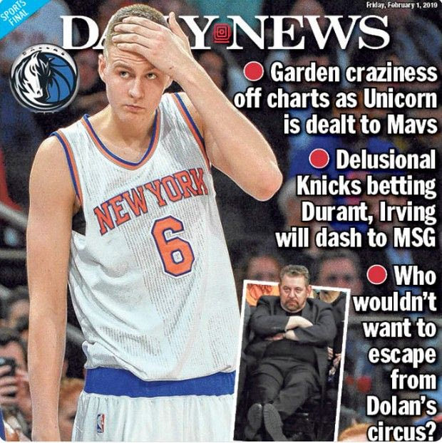 Στη Νέα Υόρκη η θερμοκρασία από το απόγευμα της Πέμπτης κυμαίνεται μεταξύ των -9 και των -3 βαθμών Κελσίου. Δεν ευθύνεται μονάχα το σφοδρό κύμα κακοκαιρίας που έχει πλήξει κυρίως τον κεντρικό τομέα των ΗΠΑ. Στο Μανχάταν ‘πάγωσαν’ διαβάζοντας πως οι Νικς έχασαν άλλον ένα (μελλοντικό) αστέρα τους παραχωρώντας τον Κρίσταπς Πορζίνγκις στους Ντάλας Μάβερικς.