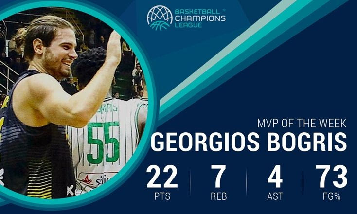 Πολυτιμότερος παίκτης της έκτης αγωνιστικής του Basketball Champions League αναδείχθηκε ο Γιώργος Μπόγρης της Τενερίφης.