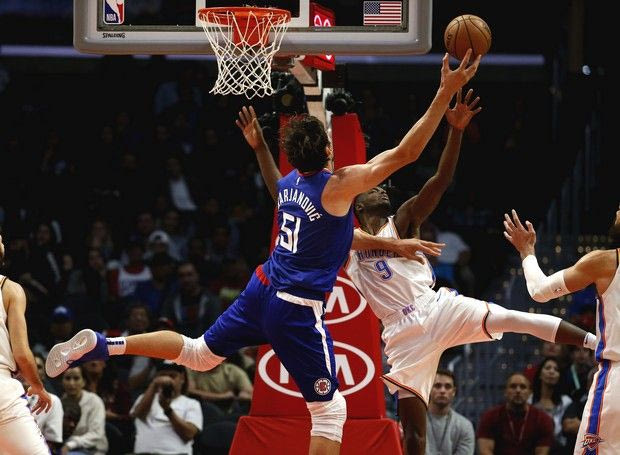 Los Angeles Clippers' Boban Marjanovic (51) goes up to the basket agains Oklahoma City Thunder's Jerami Grant (9) during the second half of an NBA basketball game Friday, Oct. 19, 2018, in Los Angeles. Clipper won 108-92. (AP Photo/Ringo H.W. Chiu) AP