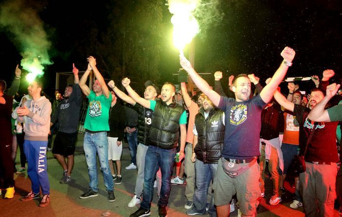 Τη μεγαλύτερη αποθέωση γνώρισε φυσικά ο αρχηγός του “τριφυλλιού”, Δημήτρης Διαμαντίδης κατά την αποχώρησή του από το Ολυμπιακό Στάδιο με το αυτοκίνητό του.