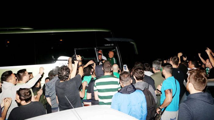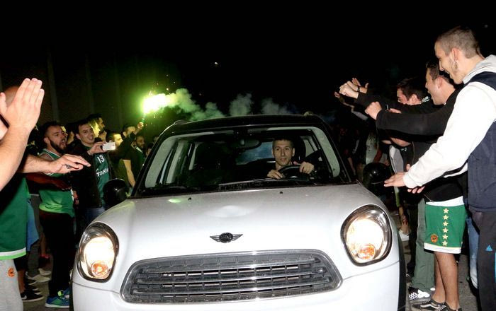 Εκατοντάδες φίλοι του Παναθηναϊκού έδωσαν το βράδυ της Πέμπτης (19/5) το “παρών” στο ΟΑΚΑ προκειμένου να αποθεώσουν τους θριαμβευτές του ΣΕΦ.
