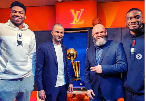 Πριν από λίγο καιρό (όταν ακόμη δεν υπήρχε η πανδημία του κορονοϊού) ήταν επίσημος προσκεκλημένος του ΝΒΑ Europe για τον αγώνα Μιλγουόκι Μπακς-Σάρλοτ Χόρνετς που έγινε στο Παρίσι και είχε την ευκαιρία να γνωρίσει από κοντά τον Γιάννη και τον Θανάση Αντετοκούνμπο, αλλά και τον Τόνι Πάκερ. Η φωτογραφία που πόσταρε στη σελίδα του στο instagram τον δείχνει τρισευτυχισμένο: