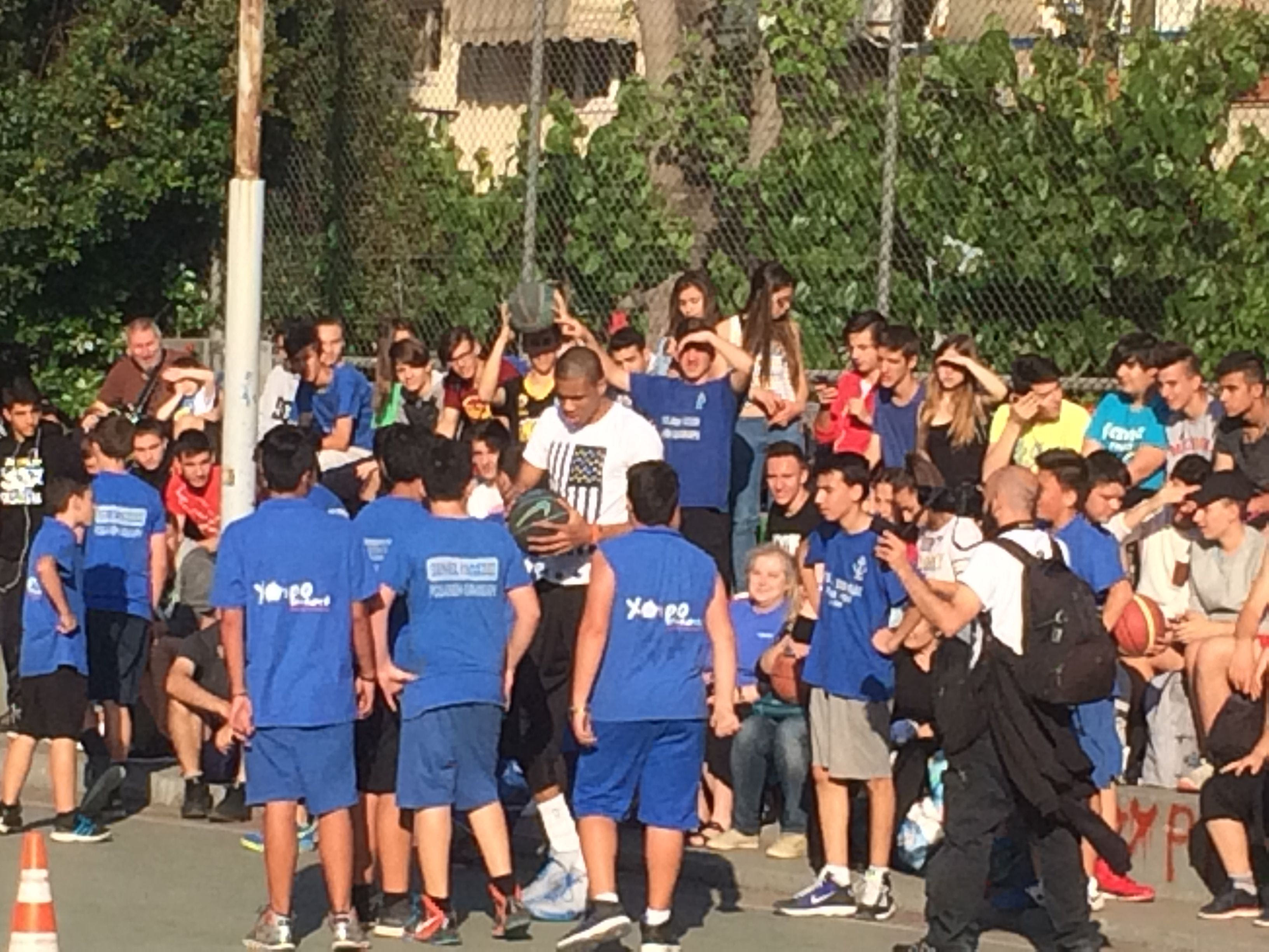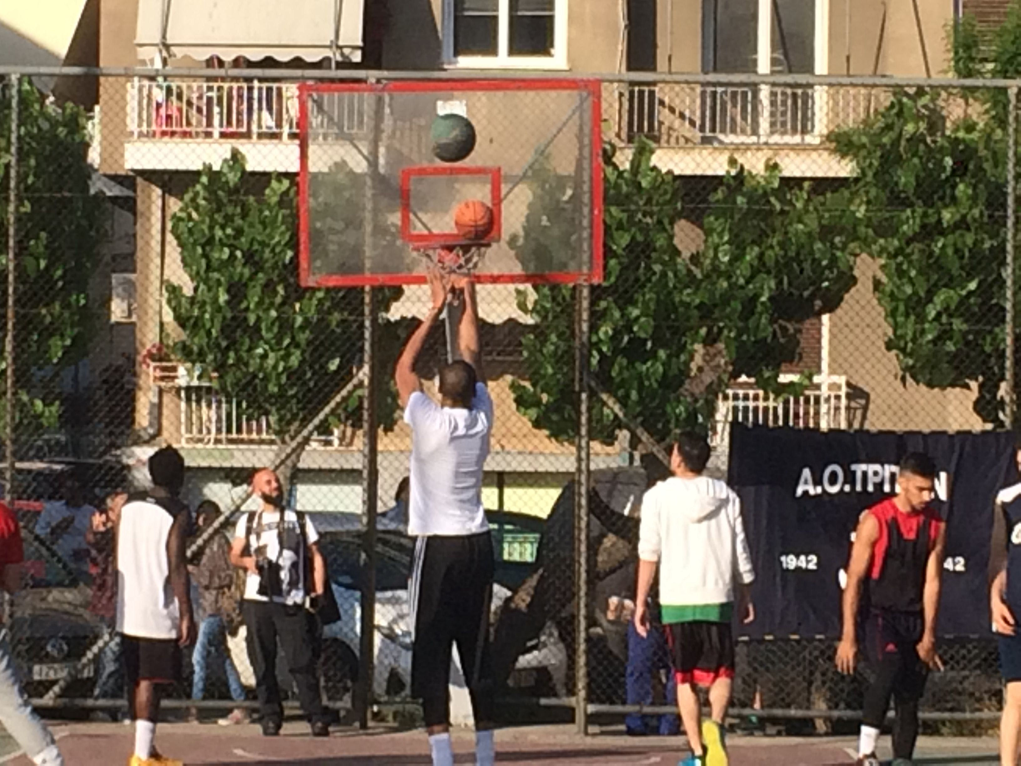 Υπό το βλέμμα εκατοντάδων παιδιών και όχι μόνο, ο Γιάννης και ο Θανάσης Αντετοκούνμπο έδωσαν μία γεύση από… ΝΒΑ στο ανοιχτό γήπεδο του Τρίτωνα.