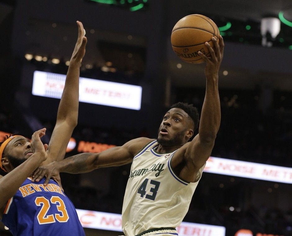 O Θανάσης Αντετοκούνμπο έπαιξε για 12' εναντίον των Νικς και σκόραρε 10 πόντους. AP Photo/Jeffrey Phelps