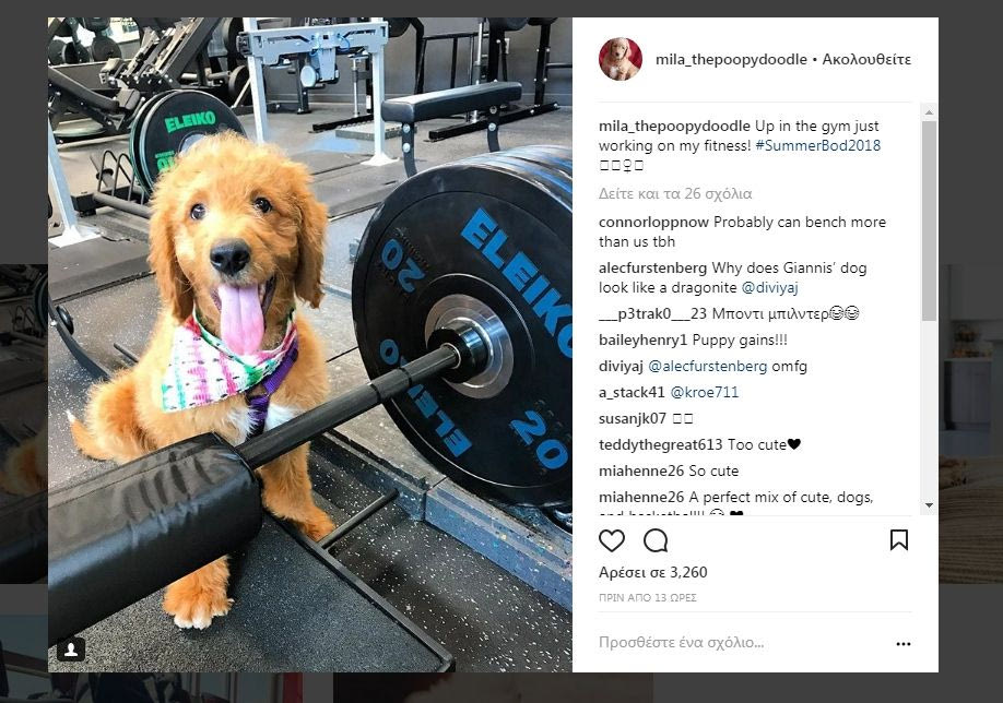 Δεν ξέρουμε τι θα κάνει ο Γιάννης στο δικό του λογαριασμό, σε εκείνον του σκύλου του πάντως υπάρχει… κινητικότητα. Και μάλιστα μέσα από το γυμναστήριο!