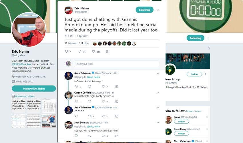 Σύμφωνα με δημοσιογράφο που ασχολείται με το ρεπορτάζ των Μπακς, όπως και πέρσι, έτσι και φέτος, ο Έλληνας άσος θα απέχει από τα social media στο διάστημα που θα κρατήσουν τα πλέι οφ, έτσι ώστε να συγκεντρωθεί 100% στο στόχο του.