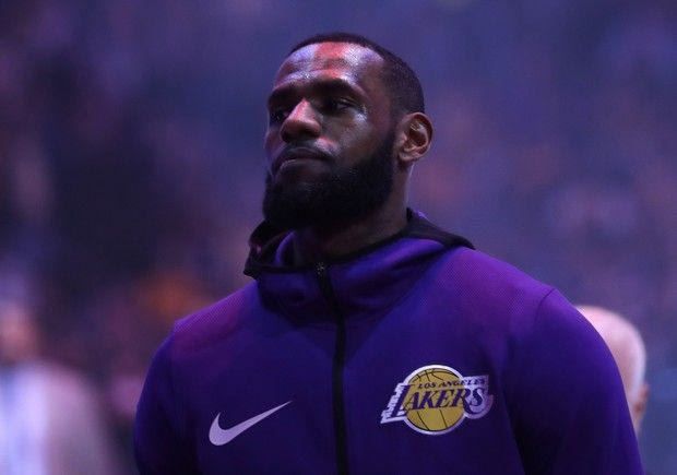 Los Angeles Lakers' LeBron James listens to the national anthem before an NBA basketball game against the Memphis Grizzlies Sunday, Dec. 23, 2018, in Los Angeles. (AP Photo/Marcio Jose Sanchez) AP Photo/Marcio Jose Sanchez