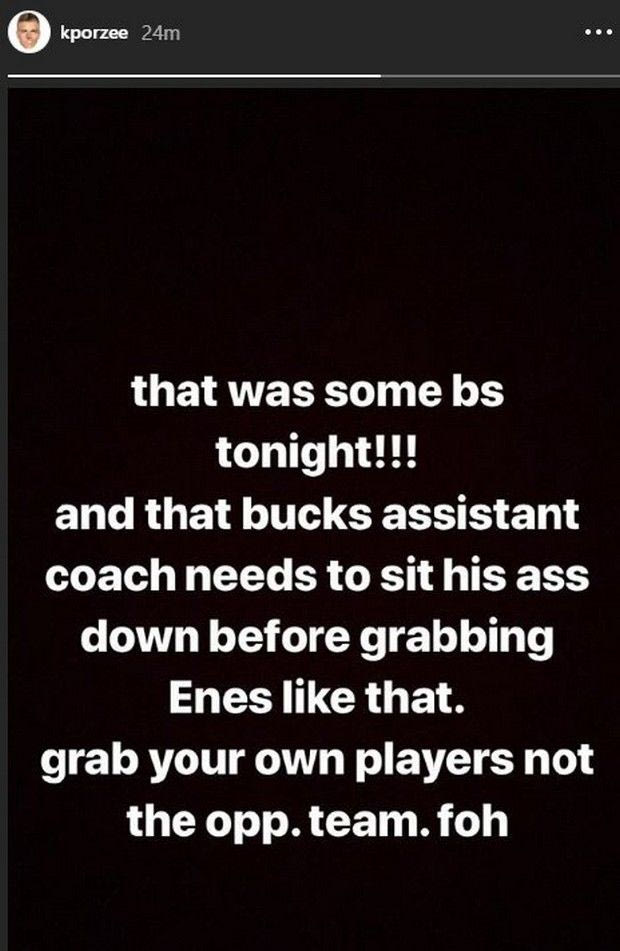 Σε μηδενικό χρόνο βρέθηκε στη μέση ο ασίσταντ των Μπακς, Ντάρβιν Χαμ, ο οποίος χτύπησε με τον ώμο του τον Καντέρ, για να τον απομακρύνει. Κάτι που δεν άρεσε στον Κρίσταπς Πορζίνγκις, o οποίος αναρρώνει ακόμα από ρήξη μηνίσκου -που έπαθε σε φάση που είχε στο ‘κάδρο’ τον Γιάννη και για αυτό τον έχουν άχτι οι φαν των Νικς- όπως ενημέρωσε με Instagram Story.