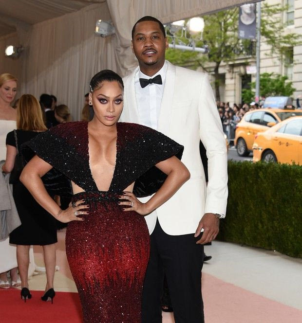 La La Anthony, left, and Carmello Anthony arrive at The Metropolitan Museum of Art Costume Institute Benefit Gala, celebrating the opening of "Manus x Machina: Fashion in an Age of Technology" on Monday, May 2, 2016, in New York. (Photo by Evan Agostini/Invision/AP) Evan Agostini/Invision/AP
