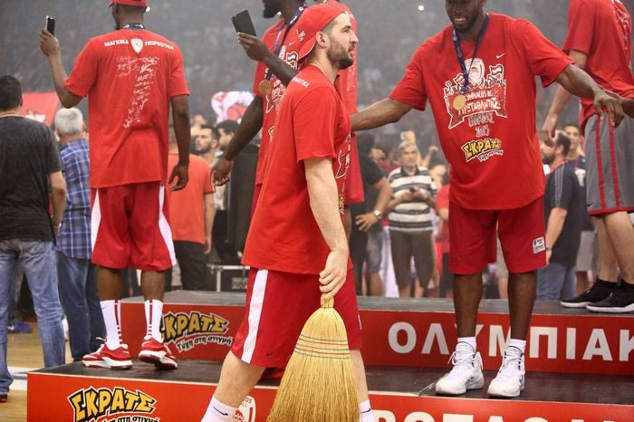 Ο σέντερ του Ολυμπιακού, Βασίλης Καββαδάς εθεάθη να κρατάει μία... σκούπα κατά τη διάρκεια των πανηγυρισμών για την κατάκτηση του πρωταθλήματος. Δείτε τη PHOTO.