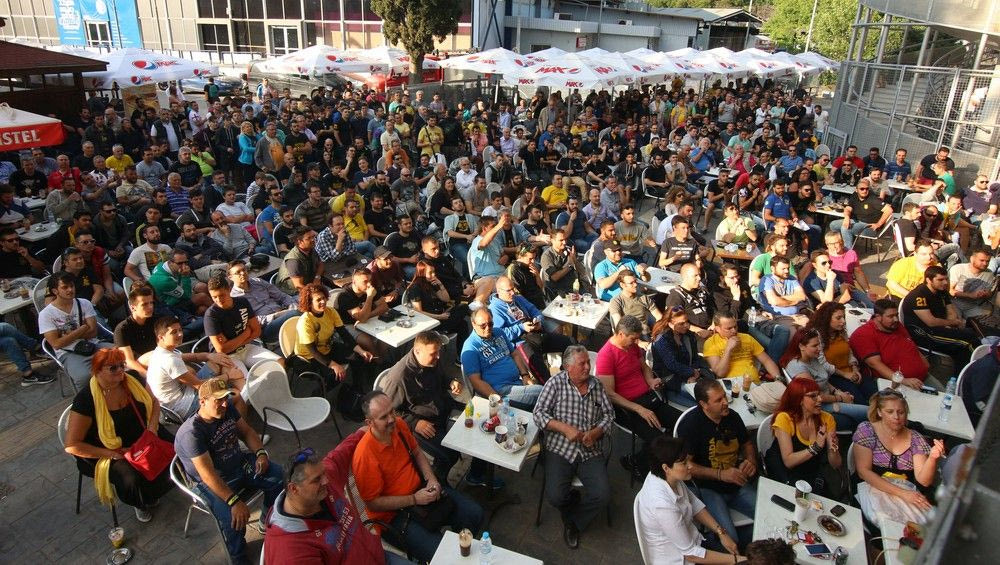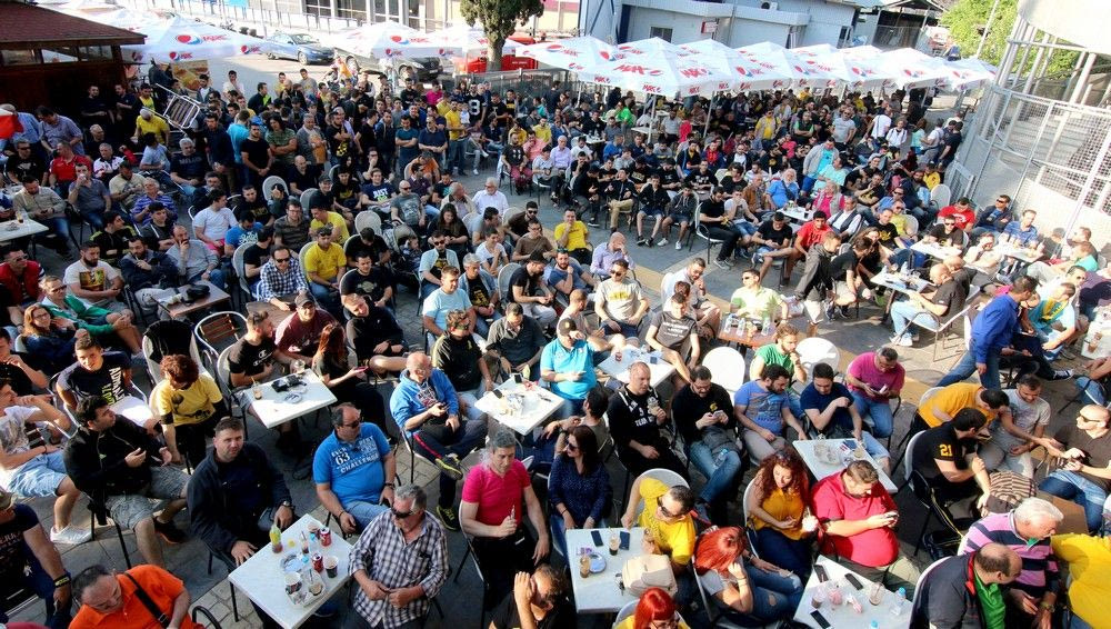 Οι φίλαθλοι του Άρη ανταποκρίθηκαν στο κάλεσμα της “κίτρινης” ΚΑΕ και παρακολούθησαν το τρίτο ματς της σειράς με την ΑΕΚ από οθόνες που στήθηκαν έξω από τις θύρες του Παλέ.