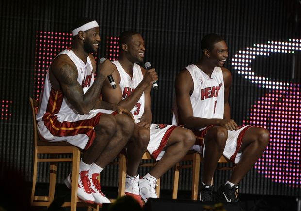 Στο Μαϊάμι τον υποδέχθηκε ο Ράιλι. “Είχε έρθει με την οικογένειά του και φίλους. Έτρεμε, εξουθενωμένος, σχεδόν με δάκρυα στα μάτια. Δεν ήταν απλά μια μεταγραφή, άφηνε πίσω του μια ολόκληρη ζωή, σπάζοντας όλους τους δεσμούς με το Οχάιο. Θέλει κότσια κάτι τέτοιο”, λέει, ενώ θυμήθηκε τις τρελές δηλώσεις του Τζέιμς μια μέρα μετά, όταν στην φαντασμαγορική παρουσίασή του (μαζί με Γουέιντ και Μπος) από τους Μαϊάμι Χιτ, πήρε το μικρόφωνο και υποσχέθηκε “όχι δύο, όχι τρία, όχι τέσσερα, όχι πέντε, όχι έξι, όχι εφτά πρωταθλήματα”.