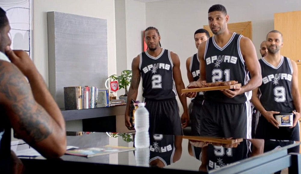 Η διαφήμιση βρίσκεται στο διαδίκτυο από τον Οκτώβριο του 2015 και παρουσιάζει τους Τιμ Ντάνκαν, Τόνι Πάρκερ, Κάουι Λέοναρντ, Ντάνι Γκριν και Πάτι Μιλς να επισκέπτονται το σπίτι του Λαμάρκους Όλντριτζ και να του φέρνουν δώρο τα διαφημιζόμενα τρόφιμα.