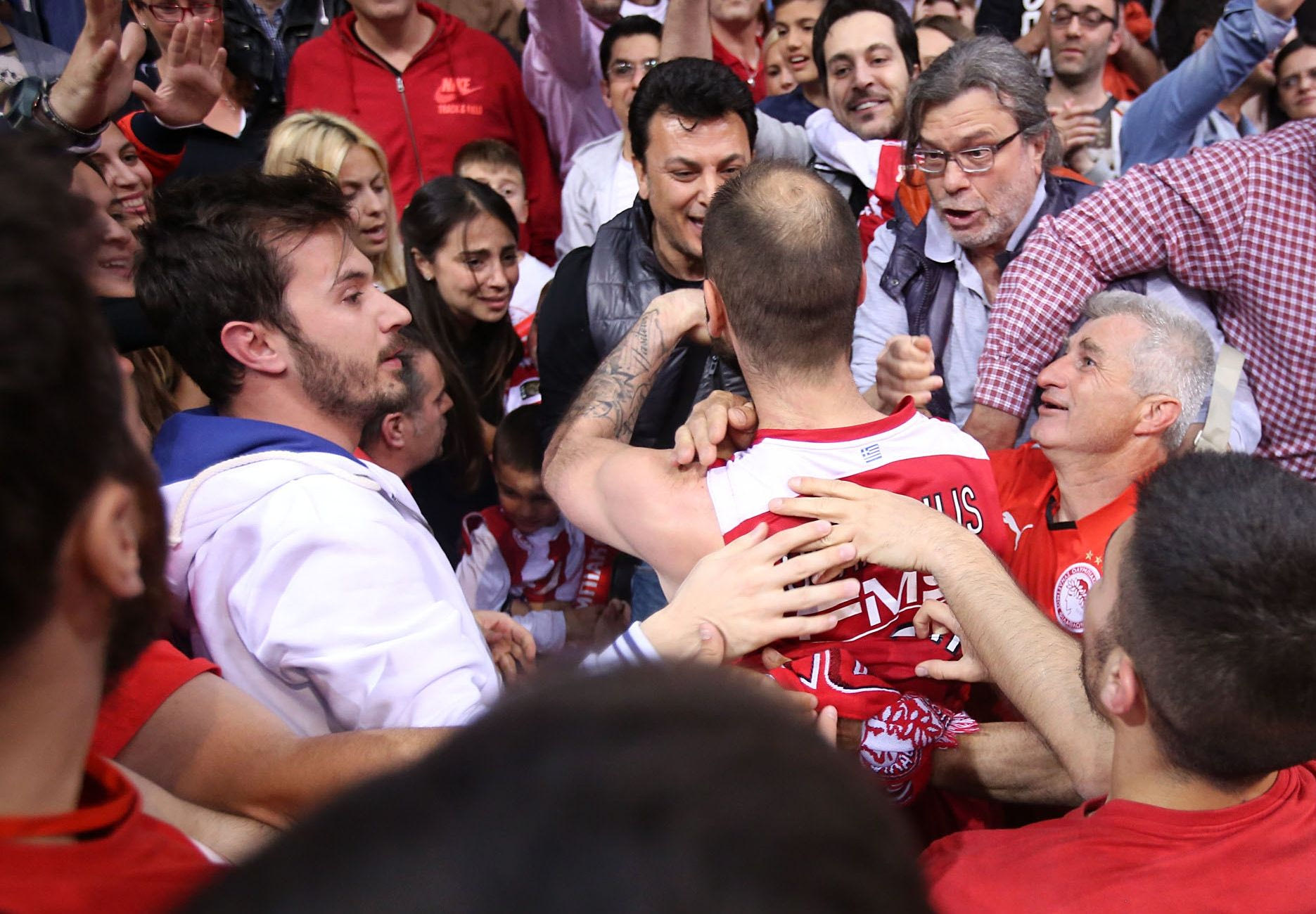 Παρόλα αυτά πανηγύρισε με την ψυχή του για την πρόκριση του Ολυμπιακού σε ακόμη ένα Final-4, πηγαίνοντας στην οικογένειά του. Μάλιστα η σύζυγός του Ολυμπία Χοψονίδου, πλημμυρισμένη από συναισθήματα, δεν μπόρεσε να συγκρατήσει τα δάκρυά της.
