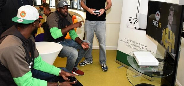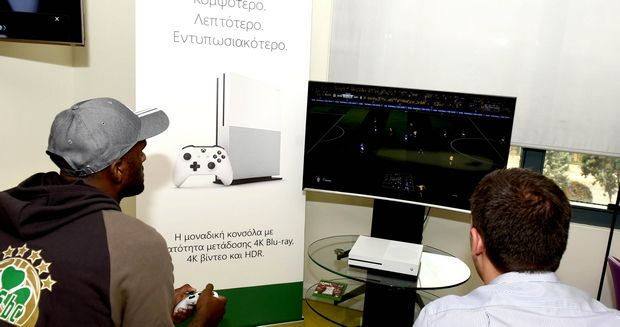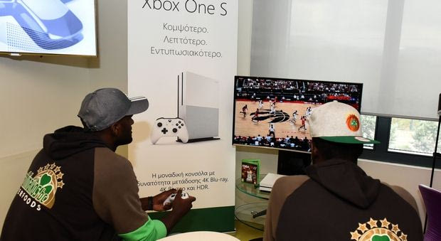 Η επιθυμία του Κρις Σίνγκλετον να τσεκάρει το νέο XBOX One S έγινε πραγματικότητα την Δευτέρα (10/10) στα γραφεία της Microsoft Hellas, όπου βρέθηκε παρέα με τον συμπαίκτη του Τζέιμς Γκιστ. Η αλήθεια είναι πως κανονικά το παρών έπρεπε να δώσει ο Μάικ Τζέιμς, ωστόσο ο τραυματισμός του δεν του το επέτρεψε.
