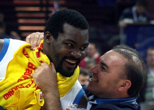 Μετά τη λήξη του μικρού τελικού, ο Σταύρος Ελληνιάδης αγκαλιά με τον Σοφοκλή... ACTION IMAGES PRESS AGENCY