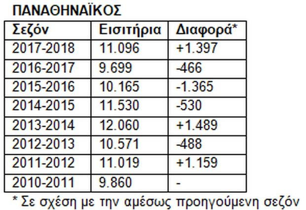 Η φετινή αύξηση είναι η δεύτερη μεγαλύτερη μέσα στη δεκαετία που διανύουμε για τον Παναθηναϊκό που πλέον σταθεροποιείται σε πενταψήφιο νούμερο μέσου όρου θεατών και δει πάνω από τους 11.000.