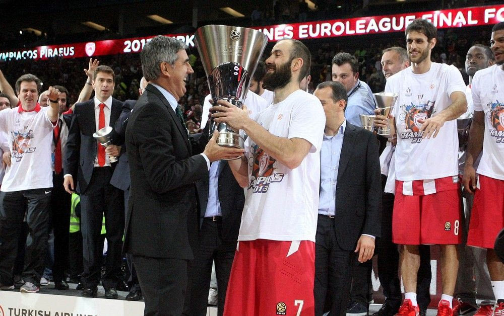Ο Τζόρντι Μπερτομέου παραδίδει στον Βασίλη Σπανούλη το τρόπαιο της Euroleague Eurokinissi
